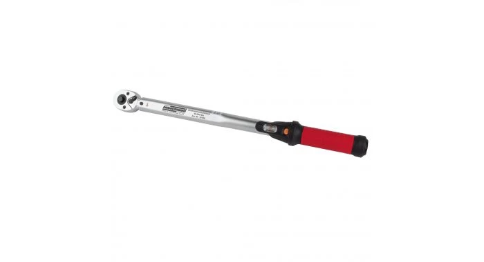 Momentsleutel 1/2″ aansluiting, omschakelbaar, bereik van 40 tot 200 Nm, tolerantie max. +/- 3% conform DIN ISO 6789-1:2017. Duidelijk afleesbaar zichtvenster voor fijnafstelling en blokkering tegen het per ongeluk verdraaien van het gekozen aanhaalmoment. Wordt geleverd in stevige bewaarcassette.