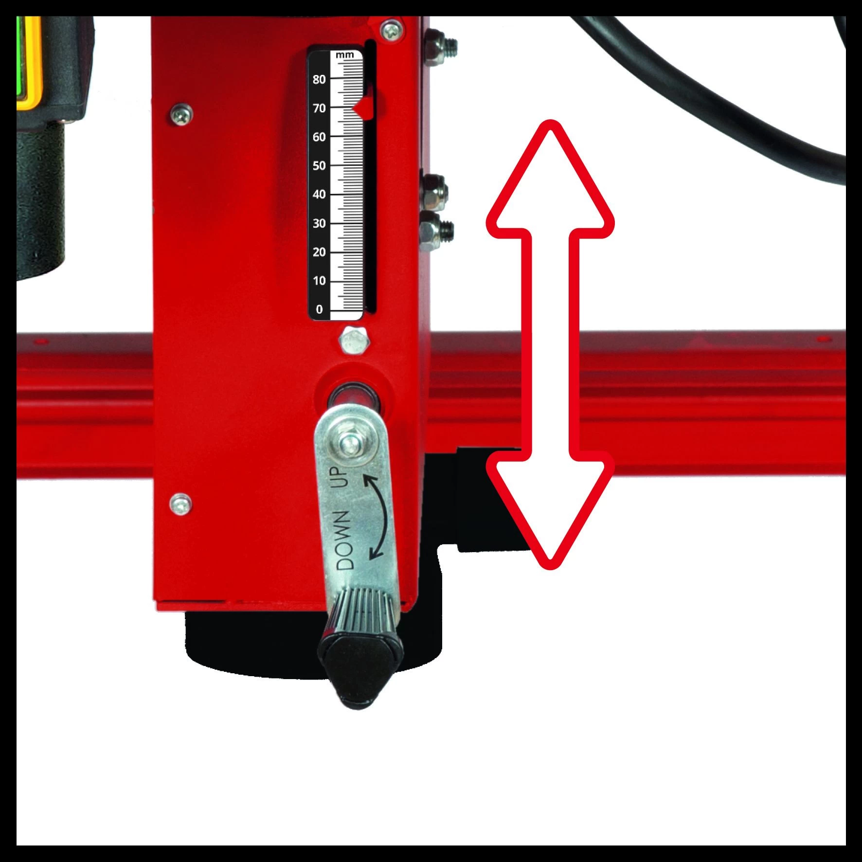 In hoogte verstelbaar blad met schaalverdeling voor de veiligheid