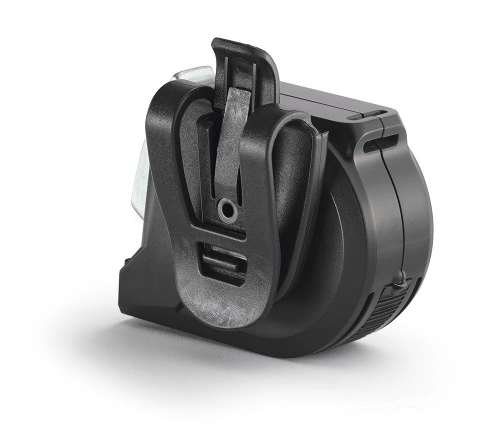 Unieke riemklem met een snelle ontkoppelingsfunctie zodat de markeermeter met één hand losgeklikt kan worden.