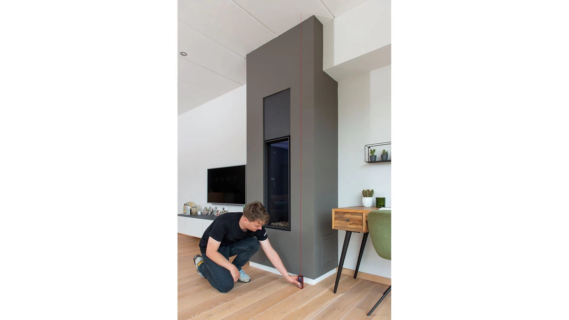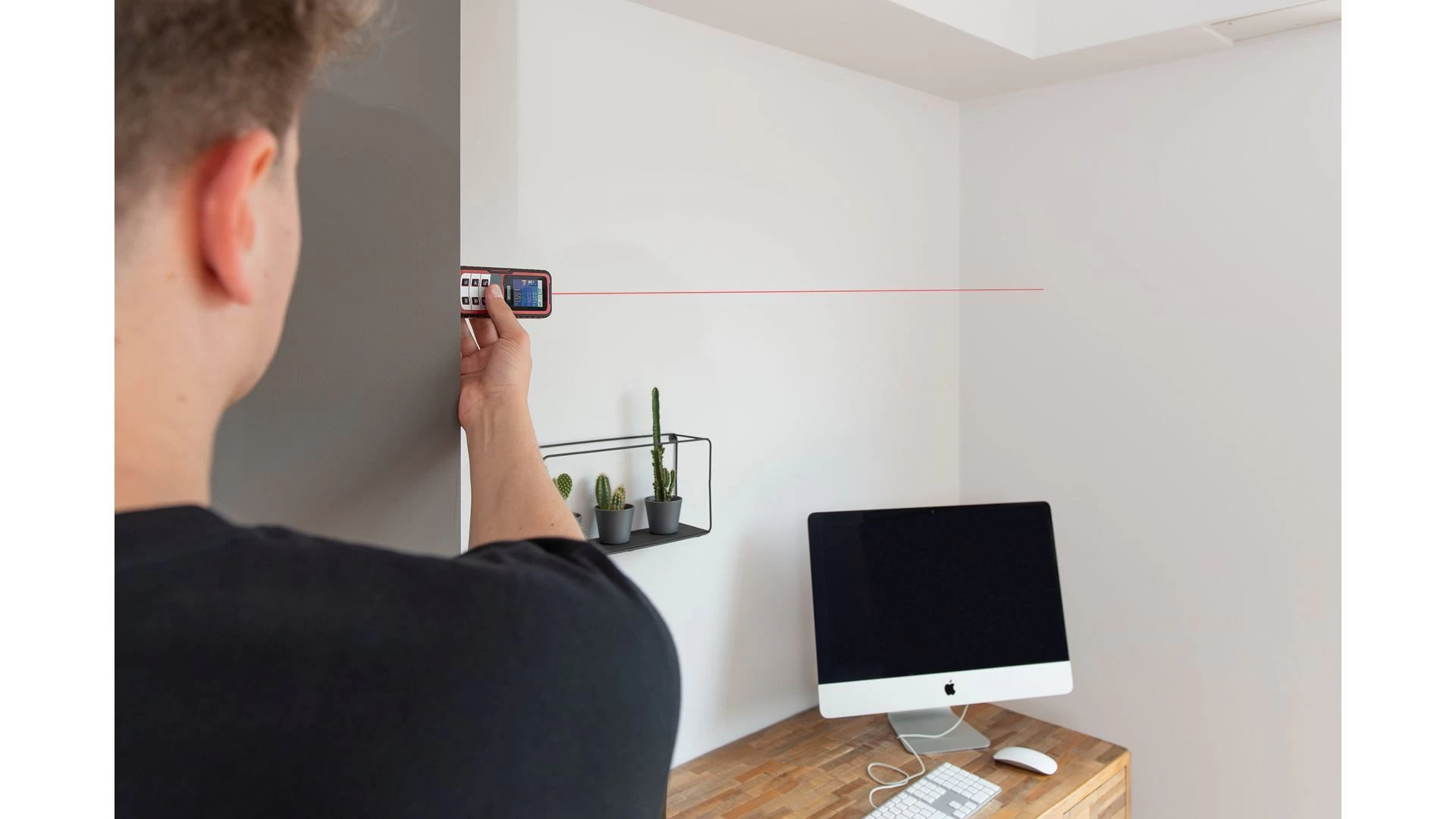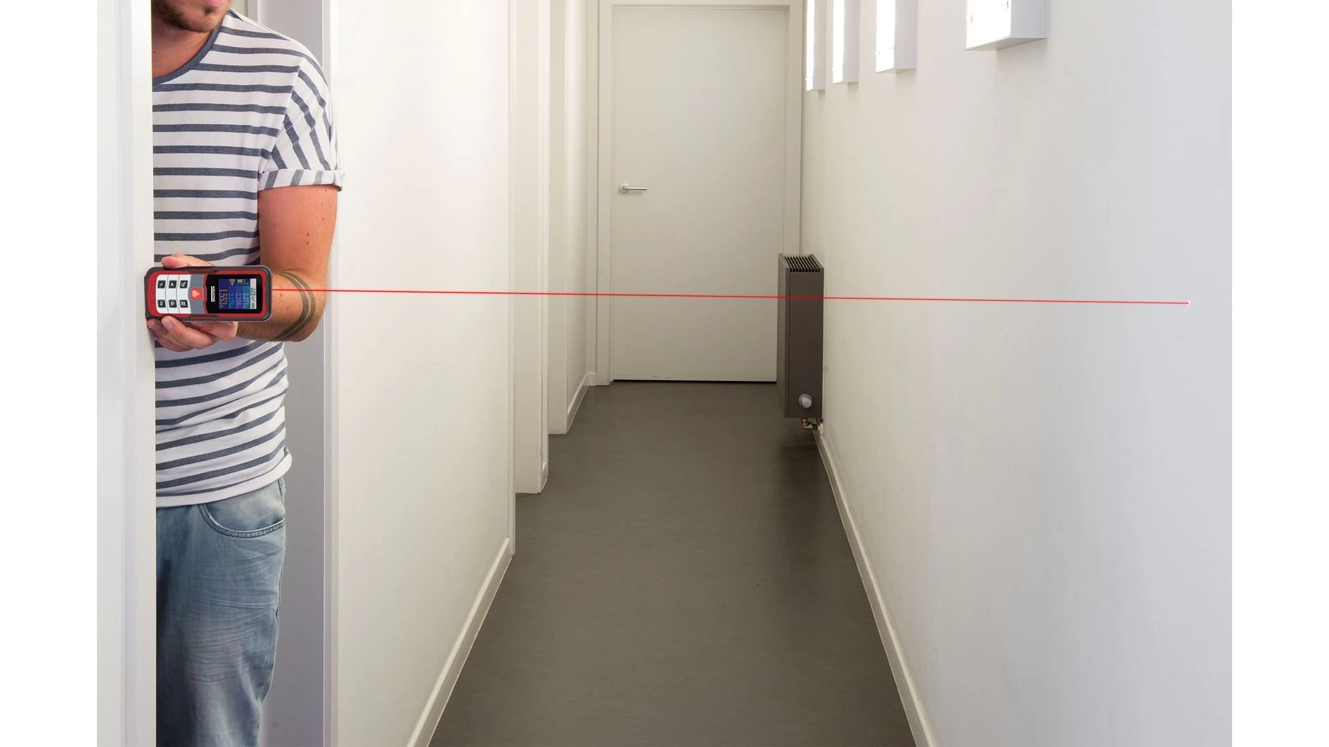 Meet grote afstanden en ruimtes niet langer onnauwkeurig met rol- of vouwmeters. Deze laserafstandsmeter van Kreator legt met zijn laserstraal afstanden vast tot wel 60 meter ver en dat tot op 2mm nauwkeurig. Hij geeft bovendien de hoek weer waarin je werkt, zodat jij altijd waterpas meet. Dat is handig om complexere hoekberekeningen uit te voeren. Het stof- en spatwaterbestendige toestel beschikt over een oppervlakte-, volume- en Pythagoras-functie en kan daarnaast probleemloos optellen en aftrekken. Je berekent zo vlot hoeveel verf je nodig hebt om een kamer te schilderen of hoeveel ruimte je hebt om je meubels te plaatsen. Ook verschillende vormen zijn meetbaar: zo ken je met de rechthoekfunctie bv. meteen de afmetingen voor je rolgordijn. Je monteert de laser op een statief, zoals de KRT706900, zodat hij nog stabieler staat. Inclusief 2 AAA-batterijen.