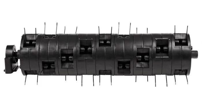 Deze beluchtingswals is voorzien van veren en geschikt om het gazon te beluchten