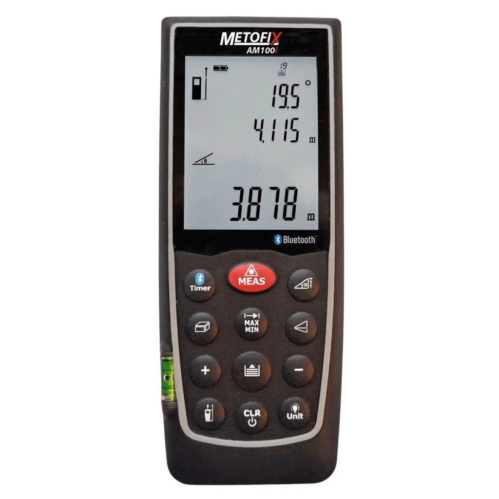 De AM100i is voorzien van een ingebouwde digitale hoekmeter. Hierdoor kunt u ook eenvoudig en snel meten bij lastige omstandigheden en moeilijk bereikbare plaatsen. De Bluetooth functie brengt de gemeten waarden over naar een smartphone of tablet. In de speciale en gratis MetoBox app, voor Apple en Android, kunnen deze waarden verwerkt worden.