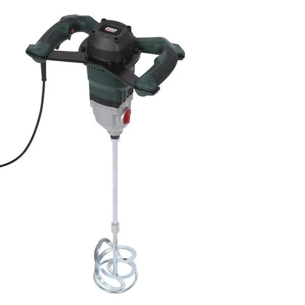 Deze beton-verfmenger van Pro Power mengt de meest uiteenlopende vloeibare materialen. Verf, vernis, pleister, lijm, mortel? Geen probleem. Daarvoor heb je 1800W aan kracht en de keuze tussen twee snelheden: 200-480min-1 en 300-750min-1.
