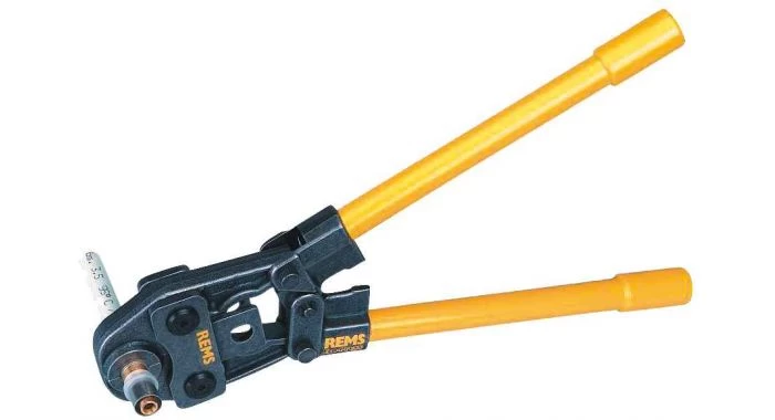 Universele handradiaalpers voor het maken van persverbindingen van alle gangbare persfittingsystemen van 10 – 26 mm