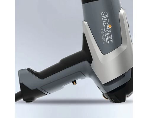 Digitaal gestuurde precisie. Elektronisch geregeld heteluchtpistool HG 2320 E. 2300 W, digitale temperatuurinstelling m.b.v. joystick van 80 graden Celsius tot 650 graden Celsius, temperatuurweergave in 10 graden Celsius stappen op LCD-display. Regeling luchthoeveelheid in 2 standen van 150 – 500 l/min. Steinel HG2320E Heteluchtpistool