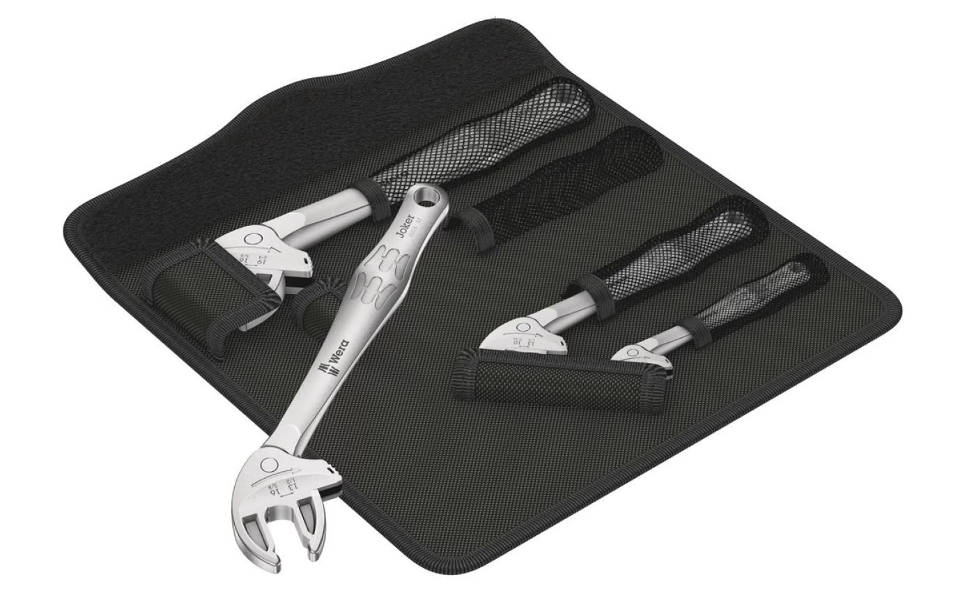Veel gebruikers zouden graag willen beschikken over een universeel gereedschap dat voor zoveel mogelijk zaken te gebruiken is. Eén stuk gereedschap voor meerdere metrische en duimse maten. En dit zou zich dan ook nog eens automatisch aan de verschillende schroefmaten moeten aanpassen. Veilig vastgrijpen, niets beschadigen en een hoge werksnelheid mogelijk maken. Middels traploos parallel lopende bekken worden meerdere steeksleutelformaten vervangen. De vereiste maat wordt automatisch bij het aanzetten op de zeskant-moer en schroef ingesteld. Het geïntegreerde hefboommechanisme klemt de zeskant-schroef resp. moer tussen de bekken veilig in, hetgeen het risico op wegglijden en beschadigingen aanzienlijk verkleint. De ratelfunctie maak snel en soepel schroeven zonder telkens het gereedschap te moeten verplaatsen mogelijk. Door toepassing van hoekprisma’s wordt een terughaalhoek van slechts 30° gerealiseerd. De 1-zijde-constructie in combinatie met de ratelfunctie en het hoekprisma maakt werken in krappe ruimtes mogelijk. De instelbare Joker 6004 is een echt universeel schroefgereedschap. Zelfinstellend. Vastgrijpend. Ratelend.